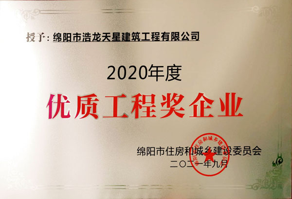 • “不忘初心,再創佳績” | 浩龍天星建工榮獲2020年度全市建筑業先進企業稱號